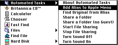 One of the major additions to System 7.5 is the AppleScript programming language (it's been available for some time, but only as an extra). Apple are keen for Mac users and Mac software developers to use AppleScript, so they've included some sample automated tasks to demonstrate its abilities. The most useful (I think) is the Add Alias to Apple Menu script.
